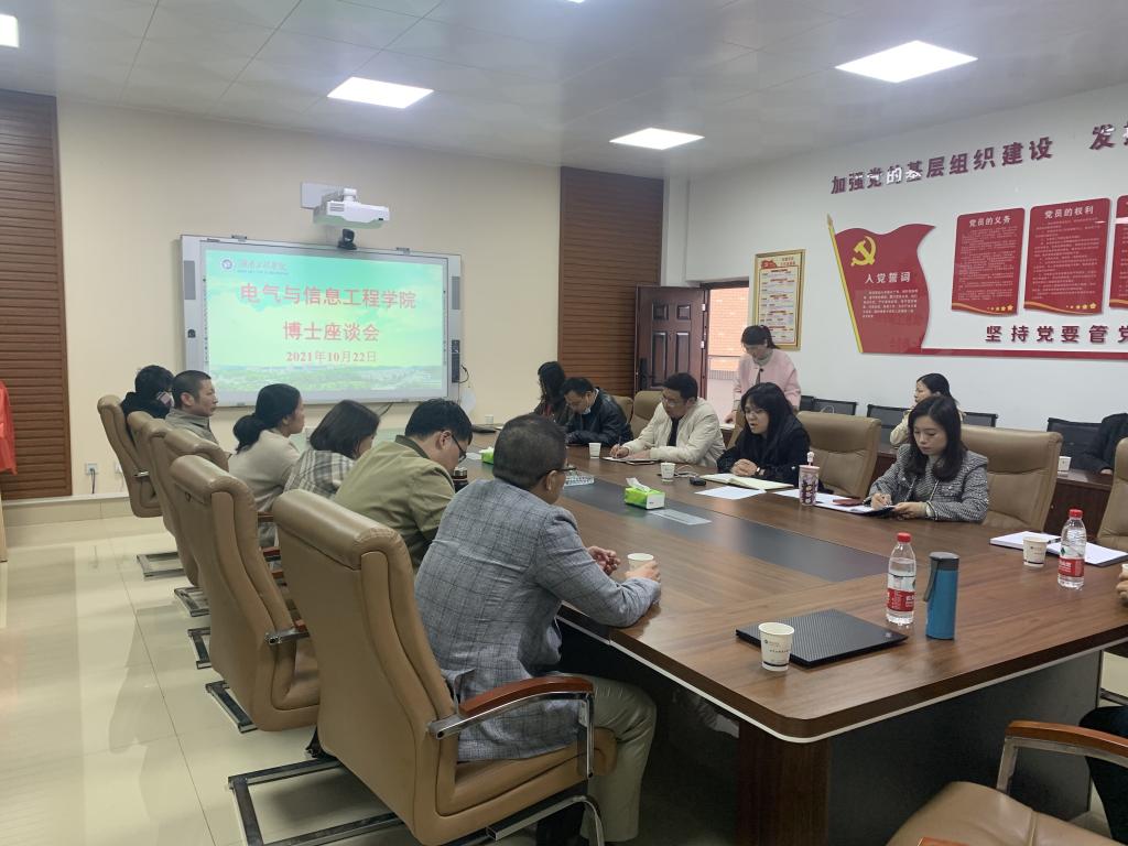 10月22日下午,88858cc永利在电气楼407召开博士座谈会,公司领导班子、公司全体博士参加座谈交流,大家相聚一堂,交流思想,共话未来。座谈会由公司副经理孙静主持。
